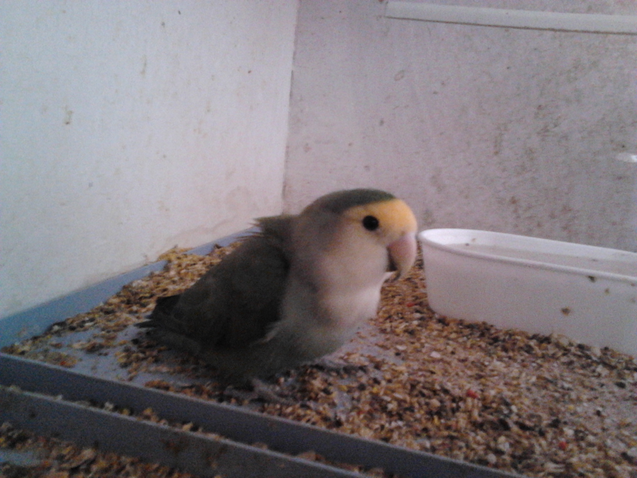 Agora a mutação... as fotos não mostram muito bem a cor, será cinzenta, mais clara no peito, com testa salmão e peito branco?